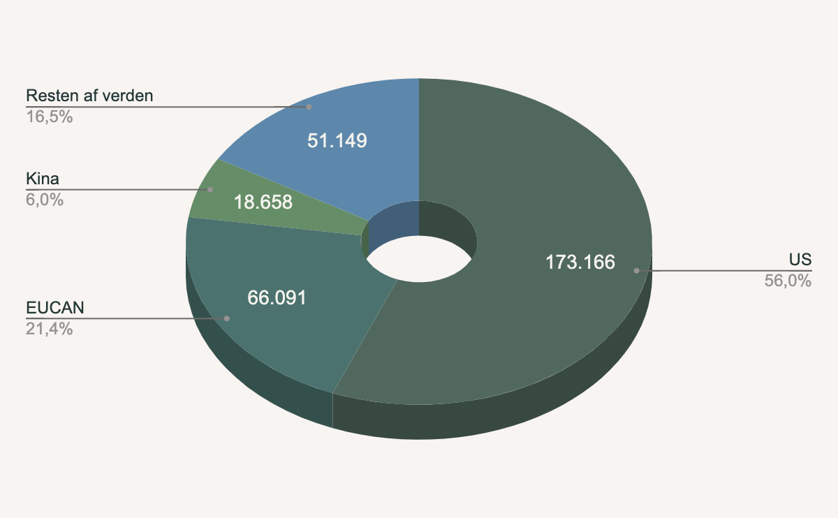 Omsætning i 2025 fordelt på regioner: