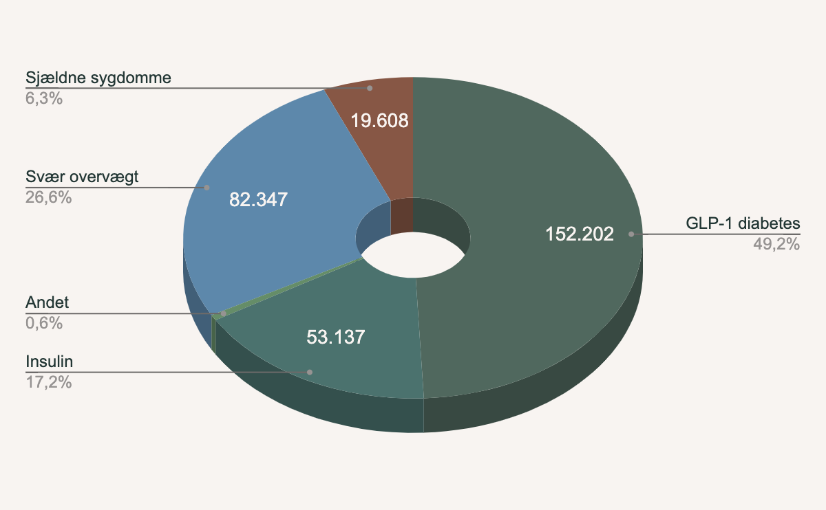 I medierne fylder vægttabsmidlerne klart mest, men Novo Nordisk er mere end det. Størstedelen af omsætningen kommer fra de klassiske forretningsben med insulinbehandlinger og GLP-1-baserede diabetesbehandlinger.